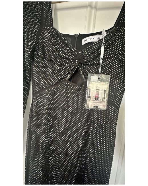This Self-Portrait Women's Dress in size 10 is a stylish and elegant choice for a wedding or party. Made from a blend of polyester and elastane, the long dress features a flattering fit and flare style with long sleeves and a zip closure.