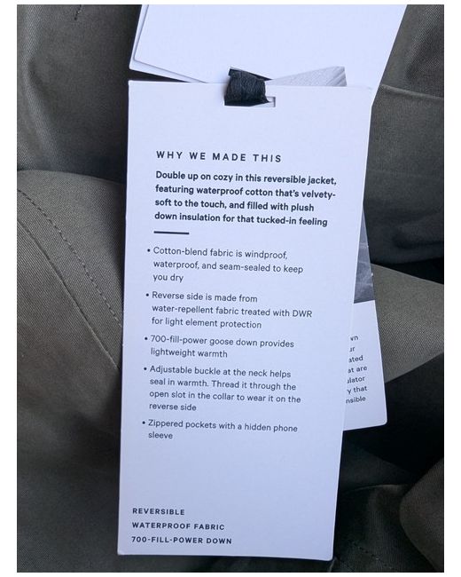 Lululemon Womens Resolute Warmth Jacket (Reversible ) Green/Black Size 12. New with tags Body filling is 85% Grey Goose Down Slight imperfection on the zip (see pictures) . The zip does close but can be stiff due to the plastic). Original price £248.00 GBP.