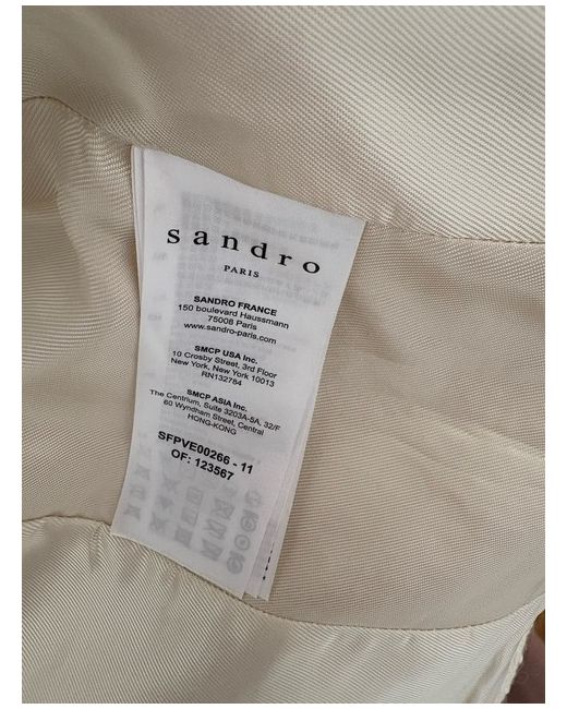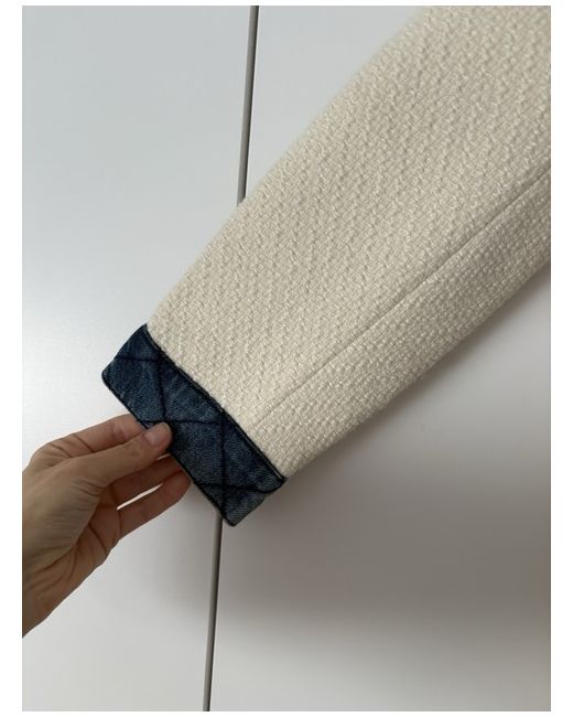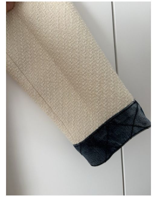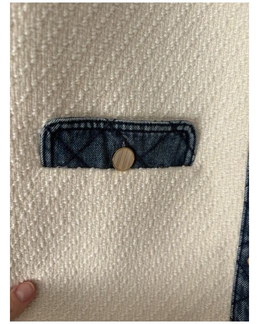SANDRO Chelby Jacket in cream white / ecru boucle with denim details. New, no tags! Very high quality, perfect for any occasion. Material: 54% Wool, 22% Acrylic, 12% Polyamide, 9% Cotton 3% Polyester. Size: 2/ M Color: Ecru, Blue Measurements approx: Shoulders: 48 cm Armpit to armpit: 50 cm; Sleeves: 54 cm; Length: 72 cm Any questions - please ask! NO RETURNS!