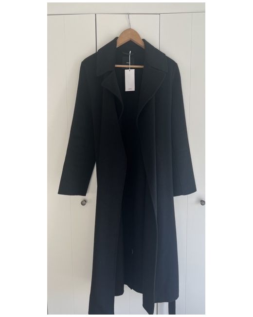 Black handmade wool coat with belt Small