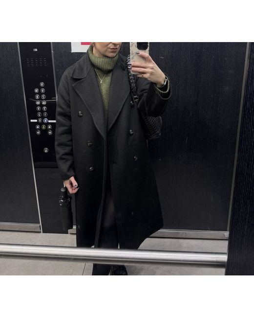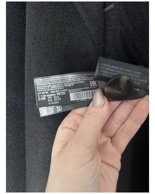 Wool mix fabric Worn once for a few hours Size XS (oversized fit for size 10/12 as seen in first picture - I sized down 2 sizes) it’s still a loose enough fit for you to wear a thick jumper underneath but not so that it drowns you
