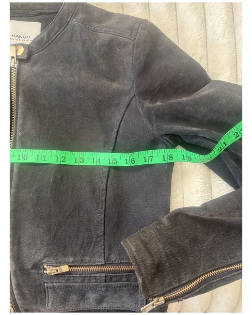 Stylish genuine leather (suede) jacket by Mango. Cropped biker-style fit with zip fastening and zip pockets. Soft suede leather, fully lined. Details: • Brand: Mango • Material: 100% genuine leather (suede) • Colour: Dark grey / charcoal • Size: EUR M (fits UK 10–12) • Closure: Zip • Condition: Very good used condition, light natural suede marks (see photos) Perfect for everyday wear, casual outfits or layering in spring/autumn.