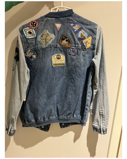 The BNWT Rare Guess 35th Anniversary Patchwork Denim Jacket in size XS is a vintage style bomber jacket perfect for casual occasions. Made from cotton denim in a blue colour, this short-length jacket is machine washable and features the iconic Guess brand. This limited edition piece is ideal for spring, adding a touch of retro charm to any outfit. Perfect for women who appreciate quality and style, this jacket is a must-have for any wardrobe.