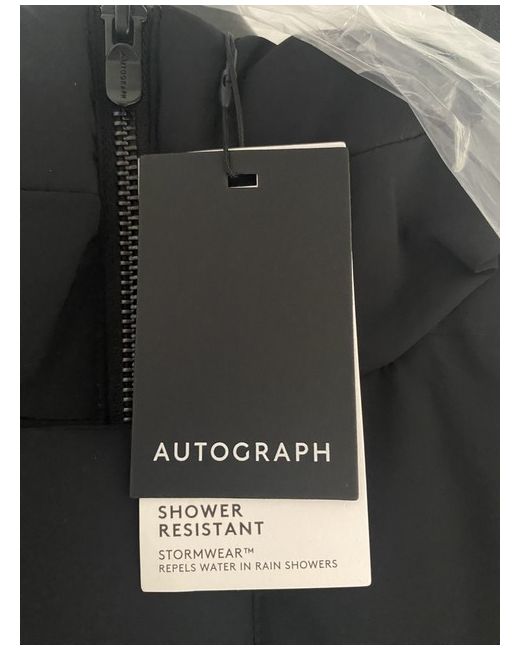 The Autograph shower resistant coat is a stylish and practical option for wet weather. In a sleek black colour, this coat is designed in a regular fit size L. Made with high-quality materials, it ensures you stay dry and comfortable during showers.