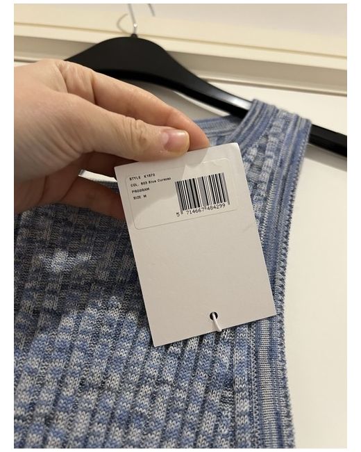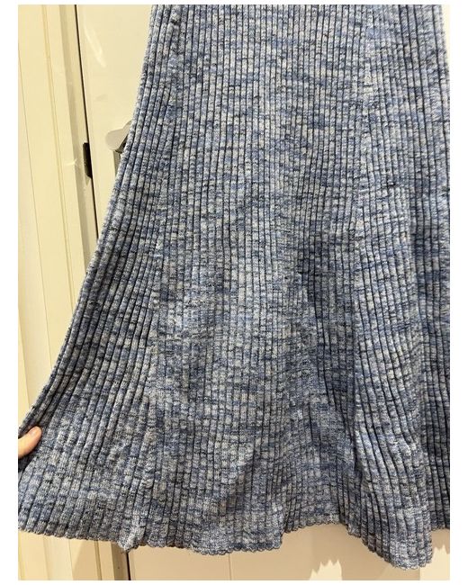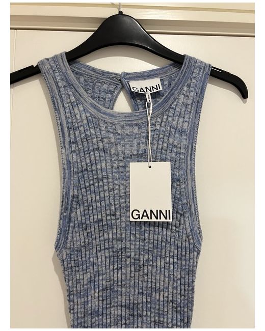 This Ganni Merino Mouline Midi Dress in light blue is a stylish addition to any woman's wardrobe. Made from 100% wool, this sleeveless dress features a flattering midi length and ribbed detailing. The size M is perfect for a regular fit, making it a versatile piece for any occasion. Whether paired with tights and boots or dressed up with heels, this new with tags dress is sure to make a statement.