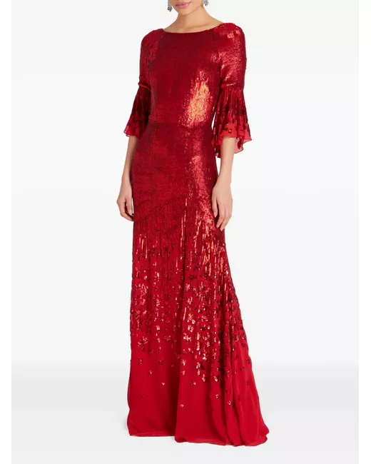 red sequin embellishment rear V-shape flared sleeves maxi length silk