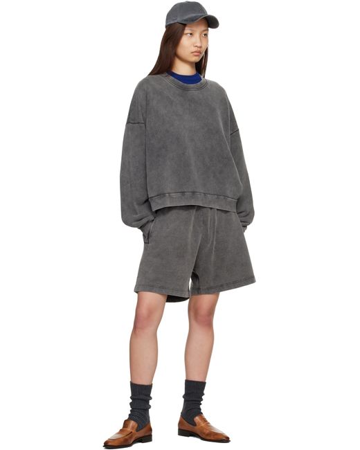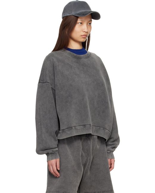 Garment-dyed cotton fleece sweatshirt. · Fading throughout · Rib-knit crewneck, hem, and cuffs · Dropped shoulders · Rubberized logo patch at back Supplier color: Faded Black