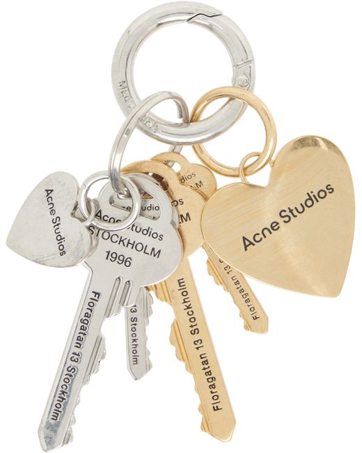 Keychain in silver-tone brass. · Keyring at top · Logo-engraved graphic charms at drop · L4 Supplier color: Gold/Silver