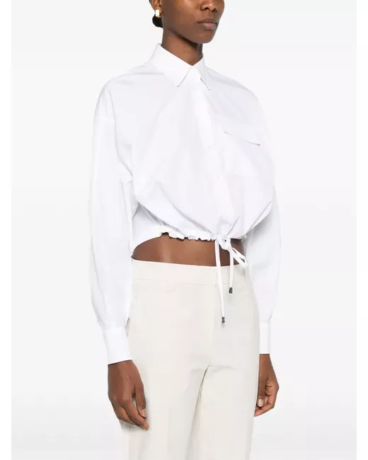 white chest pocket drawstring hem button fastening long sleeves buttoned cuffs