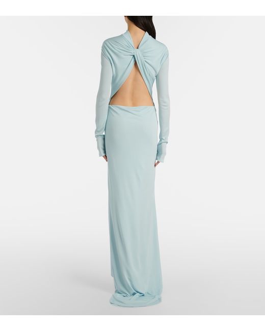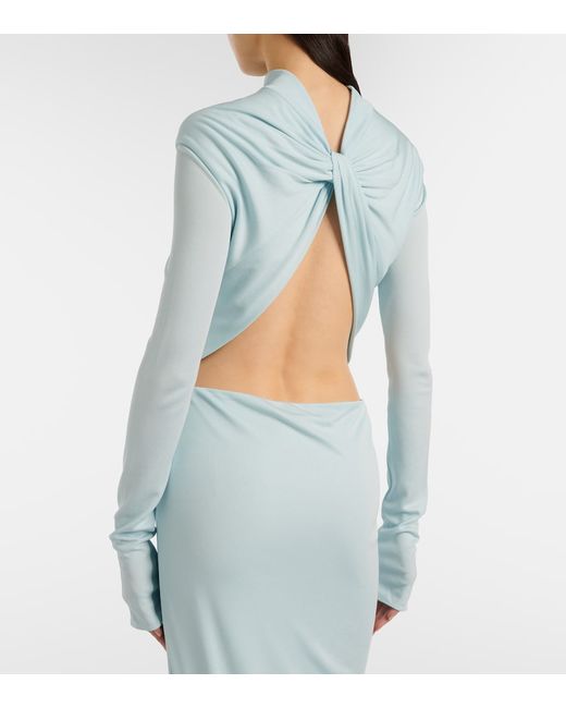 Long-Sleeve Twisted Open-Back Crepe Jersey Gown
