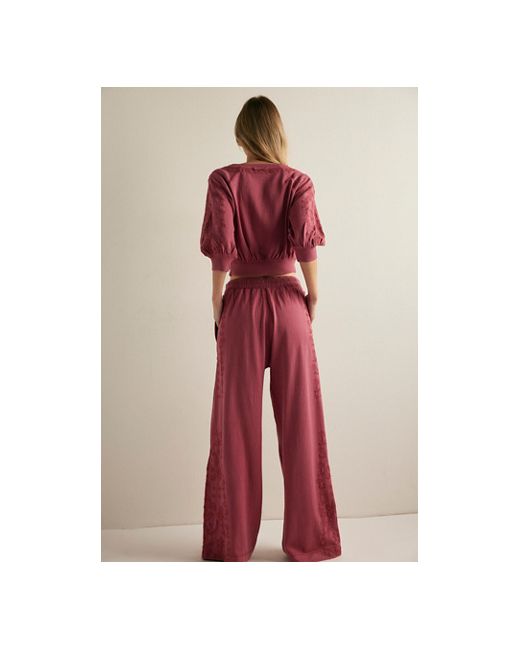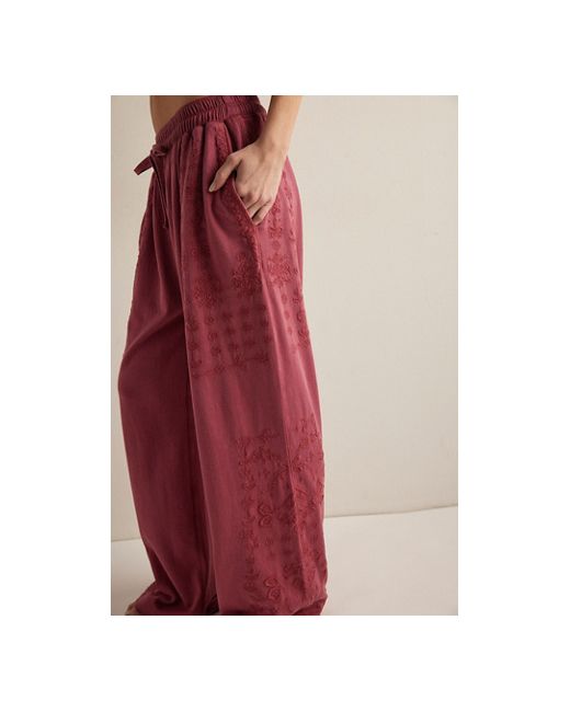 A femme addition to your loungewear collection, these pants from Intimately feature an easy straight fit with drawstring waist and floral embroidery at the sides for added texture. * Pull-on design * Side pockets * Washed fabric treatment for a lived-in look Feeling Special Lounge Pants by Intimately at Free People in Miss Crimson, Size: XS