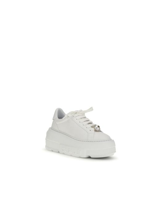 The Nexus Sneakers by Casadei feature a lace-up closure and a platform sole embellished with a tone-on-tone logo. The logo on the back completes the design with a distinctive detail, making the model modern and versatile. Season: SS26 Composition: SOLE 100% Rubber UPPER 100% Calf Leather Bos Taurus