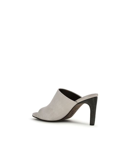 The suede Mules with Precious Heels by Brunello Cucinelli stand out for their refined elegance and attention to detail. The leather lining ensures comfort, while the leather sole with TPU rubber tread and non-slip inserts on the heel and toe ensures stability. To complete the model, the jewel decoration gives a precious and sophisticated touch. Season: SS26 Composition: 100% Calf Leather Bos Taurus