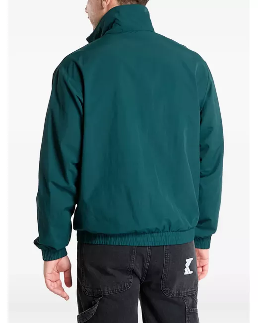 green three stripes at the shoulder zip fastening logo detail side zip pockets stand-up collar