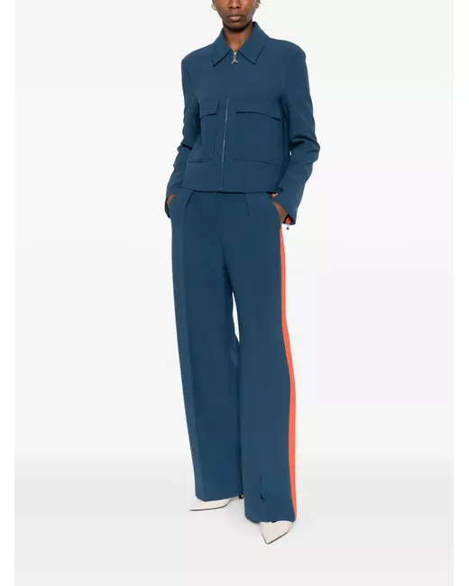 lagoon blue orange interior zip fastening point collar flap pockets long sleeves