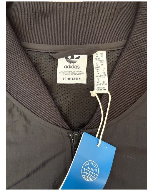Adidas Originals Track Jacket - Black (New with Tags) Classic Adidas Originals track jacket in black. Features the iconic 3-stripe design along the shoulders and sleeves, with white piping details for a sporty, retro look. Embroidered Adidas Trefoil logo on the chest adds an authentic finish. • Full zip front • Lightweight, smooth nylon-style fabric Elasticated cuffs and hem for a comfortable fit • Two zippered side pockets • Ribbed collar • Cropped, relaxed silhouette • Brand new with original Adidas tags attached Perfect for casual wear, streetwear outfits, or athleisure styling. A versatile piece that pairs easily with jeans, joggers, or leggings. Size labelled as a 1X Pit to pit - 72cm Length - 57cm