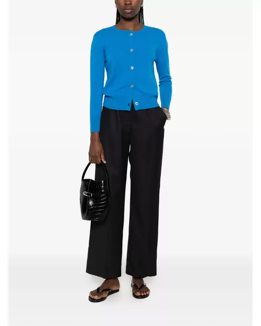 blue round neck front button fastening long sleeves ribbed cuffs ribbed hem