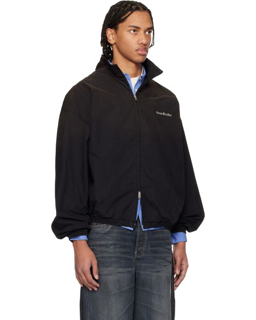 Peached cotton poplin jacket. · Stand collar · Two-way zip closure · Logo printed at chest and back · Elasticized hem and cuffs · Seam pocket at sides · Dropped shoulders · Full stretch mesh lining Supplier color: Black