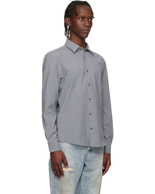 Stretch virgin wool-blend delaine shirt. · Spread collar · Button closure · Shirttail hem · Buttoned barrel cuffs Supplier color: Silver