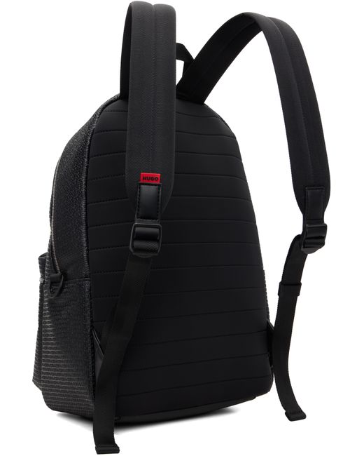 Buffed faux-leather backpack. · Logo pattern embossed throughout · Fixed carry handle · Adjustable padded shoulder straps · Zip pocket and rubberized logo patch at face · Padded jersey panel at back face · Two-way zip closure · Laptop compartment and zip pocket at interior · Twill lining · H17” x W12” x D6” Supplier color: Black