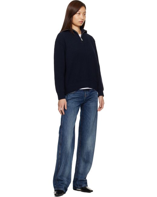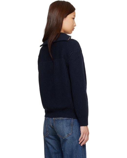 Rib-knit wool- and organic cotton-blend track jacket. · RWS-certified wool · Stand collar · Half-zip closure · Dropped shoulders Supplier color: Navy
