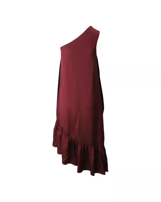 burgundy red midi-length one-shoulder design asymmetric hem ruffled trim Condition: EXCELLENT. This previously owned item is in near-perfect condition with no signs of damage or use.