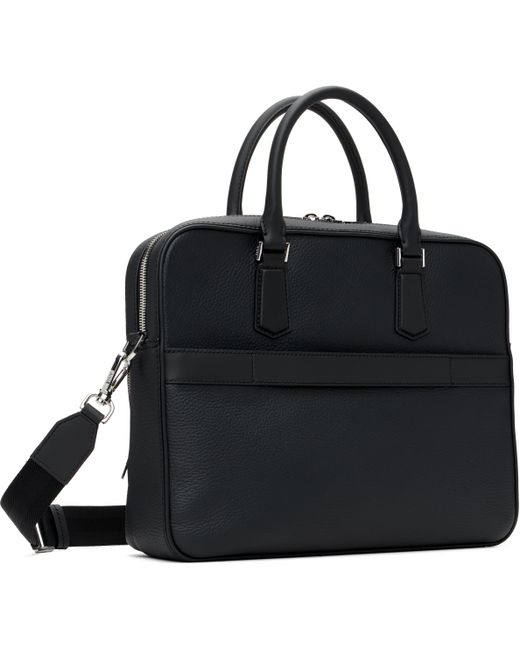 Grained leather briefcase. · Twin carry handles · Detachable and adjustable crossbody strap · Zip pocket and embossed logo at face · Zip pocket at back face · Two-way zip closure · Laptop compartment, zip pocket, and two patch pockets at interior · Recycled polyester twill lining · Logo-engraved silver-tone hardware · H11.5” x W15” x D3.5” Supplier color: Black