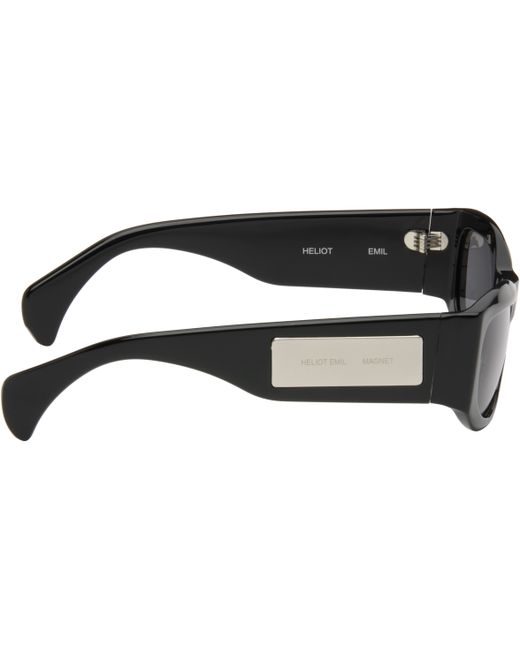 Rectangular acetate-frame sunglasses. · Gray lenses · 100% UVA/UVB protection · Integrated nose pads · Logo etched at temple · Inset logo-engraved magnet at temple · Includes case Supplier color: Black