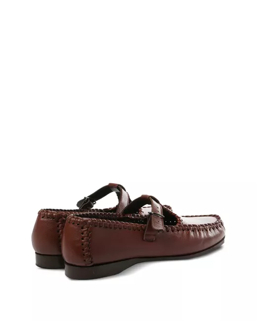 chestnut braided detail buckle-fastening strap round toe flat sole