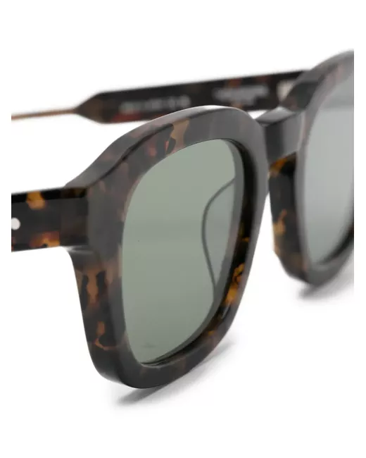 brown square frame tinted lenses straight temples temple tips signature stripe at temple tips These glasses come with a protective case.