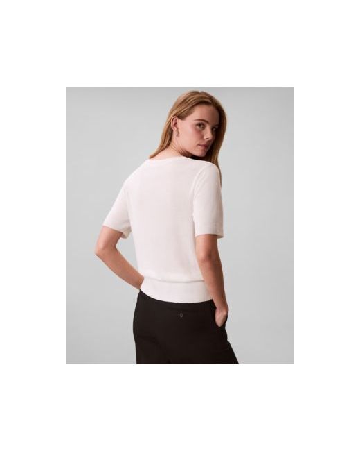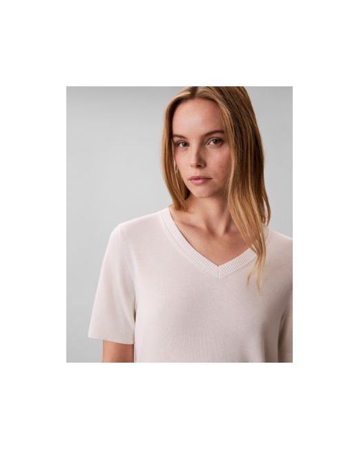 Knit with a fine gauge, this V-neck sweater from Calvin Klein provides lightweight warmth and a soft feel. The classic silhouette offers timeless versatility.