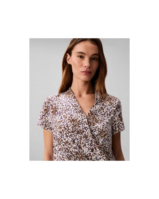 Designed with a draped silhouette, this printed short-sleeve top from Calvin Klein offers effortless elegance. The graceful folds create a beautiful movement and dimension.