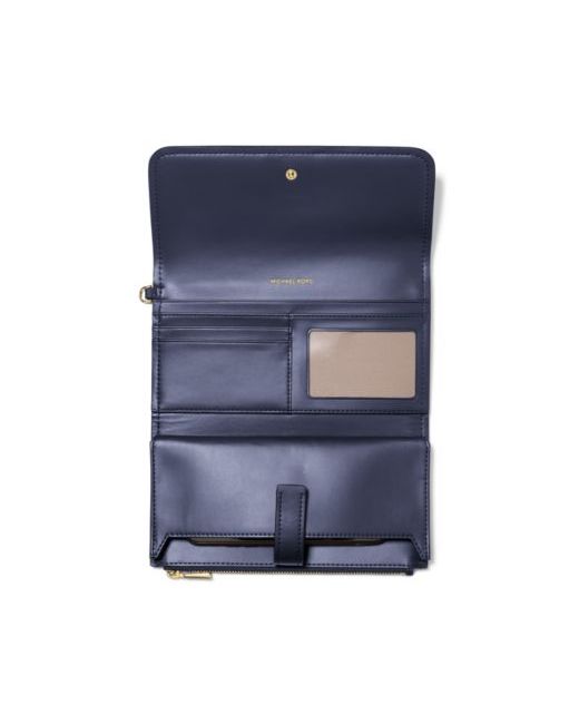Offering a flap snap closure and multiple card slots, this Michael Kors wristlet is high on convenience. A dedicated phone pocket ensures that your essentials stay organized together.