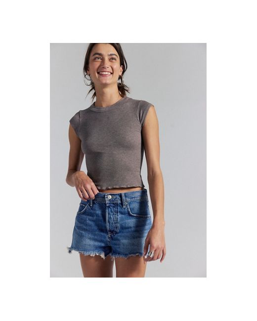 Slouched to perfection, these relaxed denim mini shorts from We The Free are featured in a mid-rise silhouette with a frayed hem for that lived-in look. **Fit:** Mid-rise, relaxed, slouchy **Feel:** Rigid denim with a lived-in feel **Features:** Five-pocket design, button fly, fading, raw hem We The Free Double Take Slouch Shorts at Free People in Wistful, Size: 24