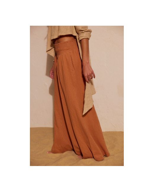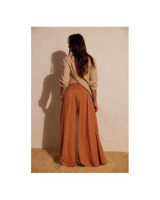 Effortlessly breezy and oh-so staple, these ultra wide-leg pants from free-est are featured in a billowy cotton fabrication with a smocked pointed waistline for the perfect flattering finish. * Pull-on style * Mid-rise * Side pockets Robin Pants by free-est at Free People in Summersun, Size: XS