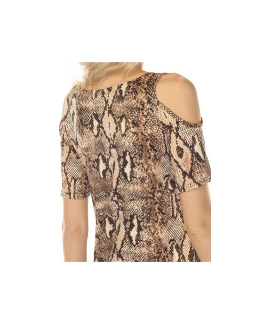 Women's Brown Cold Shoulder Snake Print Swing Top