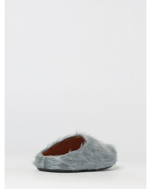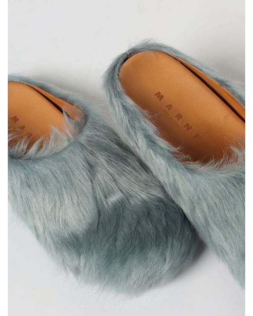 Long-hair Calfskin Fussbett Sabot Shoes Aquamarine