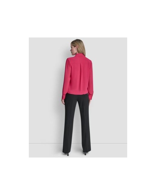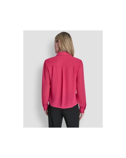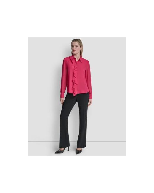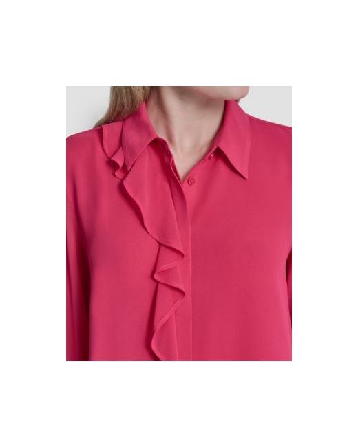 Enjoy a romantic, airy feel with this collared Dkny blouse, detailed with delicate ruffles along the front. Its long-sleeve style and graceful drape offer an effortlessly chic and feminine aesthetic.
