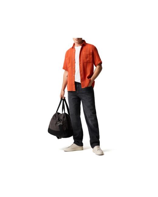 Elevate your beachside wardrobe with this meticulously crafted short sleeve shirt, woven in a special 'open-net' fabric adorned with a contrasting fine stripe. This shirt offers a unique blend of breathability and style, ensuring you stay cool and comfortable under the sun.