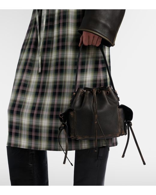 Material: leather. Lining: leather. Made in Italy. Designer color name: Dark Brown/Beige. Leather. Detachable shoulder strap, Detachable top handle. Internal details: single compartment. Side pockets. Closure: drawstring top. Includes: dust bag.