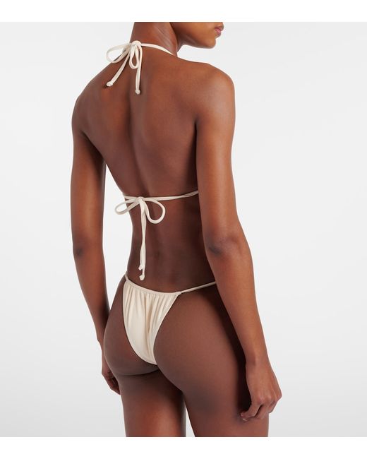 Material: 80% polyester, 20% elastane. Care instructions: hand wash. Made in Mexico. Designer color name: Faux Suede Cream. Closure: self-ties.