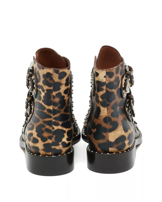 black and brown leopard print studded detail buckle straps silver-tone hardware leather Condition: UNWORN. This item is previously owned but remains unworn and in its original condition. However, it does not come with its original tags.