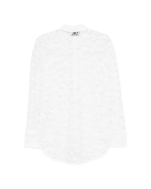 white floral lace pattern button fastening long sleeves classic collar curved hem