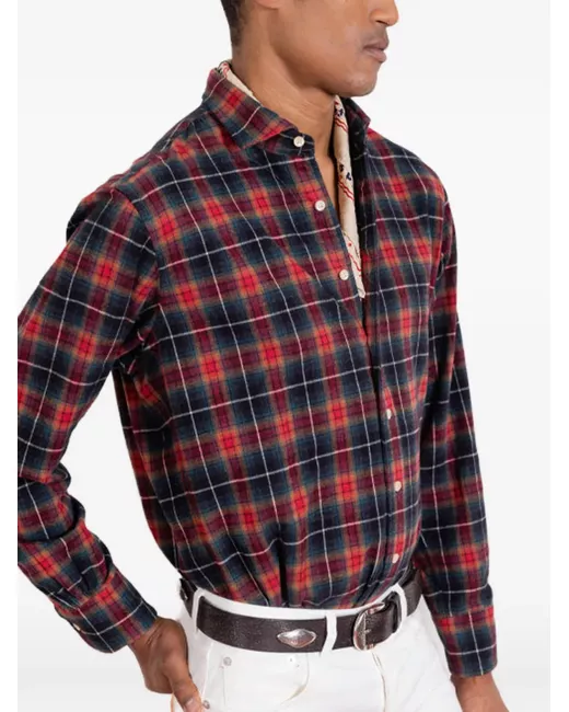red check pattern button closure long sleeves buttoned cuffs