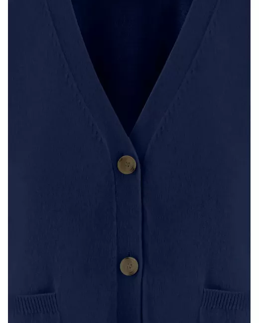 blue V-neck front button fastening two front patch pockets long sleeves ribbed trim