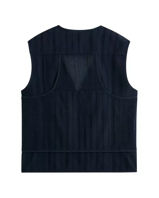 blue front zip fastening multiple front pockets sleeveless mesh detail round neck