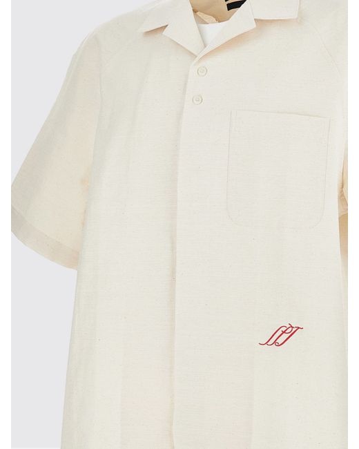 Light Striped Shirt With Logo Lettering Detail Man