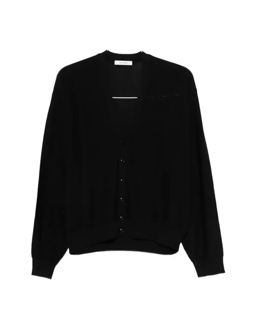 black V-neck button fastening long sleeves ribbed hem ribbed cuffs