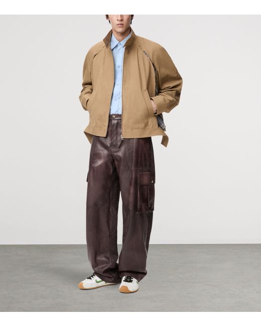 A seemingly simple design from the front, this loewe zip-up jacket certainly offers more than what first meets the eye. The wool and cotton twill outer features two inserts beneath the arms that can be adjusted to reveal flashes of the colourful tartan trim.