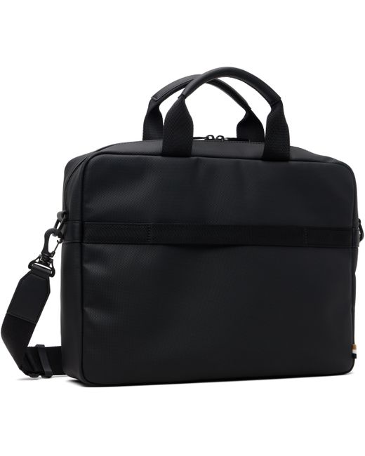 Technical canvas briefcase. · Buffed faux-leather trim throughout · Carry handles at top · Adjustable and detachable crossbody strap · Zip pocket with logo plaque and D-ring at face · Luggage strap at back face · Two-way zip closure at main compartment · Zip pocket and laptop compartment at interior · Satin lining · H11 x W15 x D3.5 Supplier color: Black